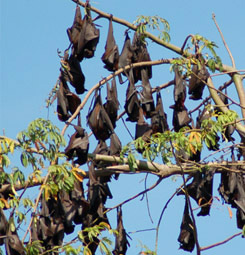 We assisted with a slender loris project in Dinigul, South India for 3 months. During this time I would visit local markets looking for flying foxes. Our research site was near a roost of Indian flying foxes, a small group of 150 bats. In fact a special day each year is set aside in Dinigul, India where the local men and boys spend all day killing flying foxes with rifles, sling shots, and spears